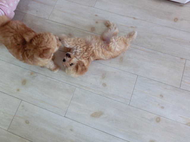 お母さんと離れて3日、 前と同じように、 じゃれてました