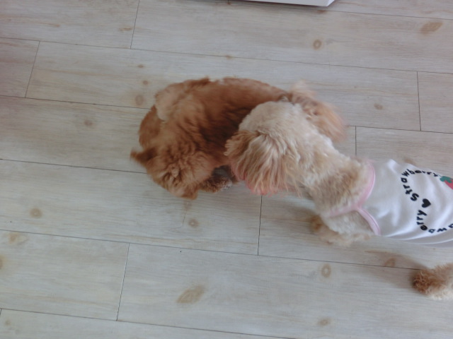お店の中を、 2匹で走り回り、 楽しいひと時を過ごしてました
