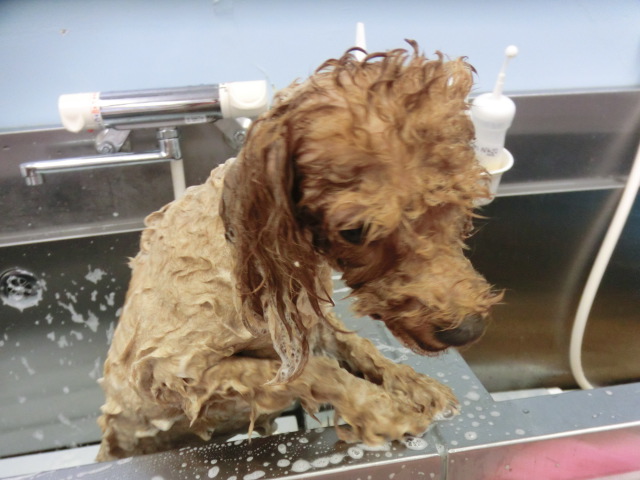 お泊りしてた 銀次郎君、 お迎えまでに トリミング とってもすっきりでしょ 足先の バリカンは 初めて ・・・・・ お手入れは 楽になると思います シャンプー中 とってもいい子で 頑張ってくれた 銀次郎君でした