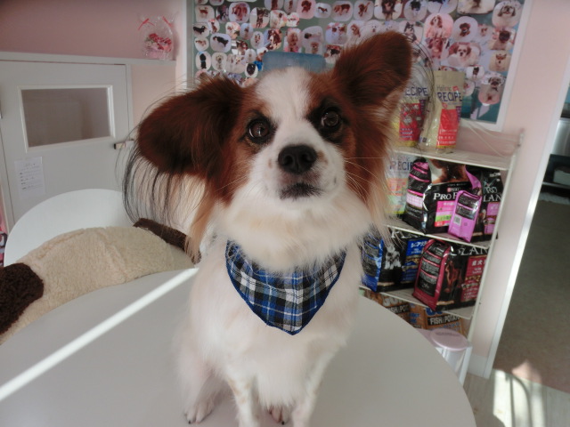 今日お迎えの予定で、 シャンプーしたケンスケ君