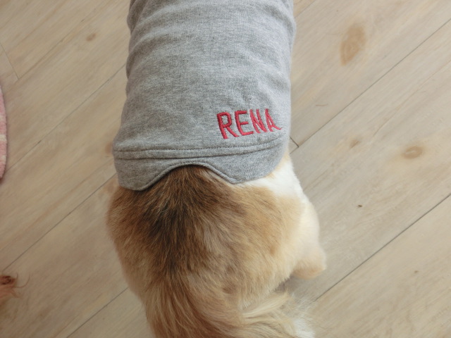 じゃあなくて、服にレナちゃんの名前の刺繍が入ってる