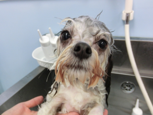 まる君、 シャンプーが終わったとこです
