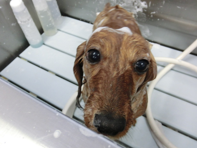 可愛いお顔でシャンプー中の ぐら君