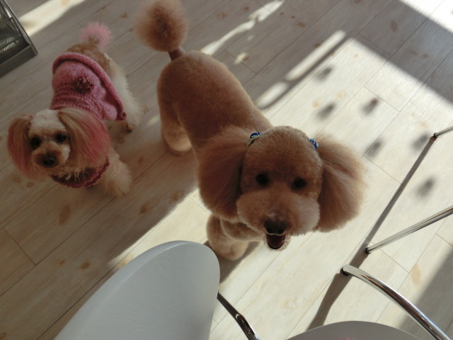 ロン君、 さくらと並んで、 おやつ待ち