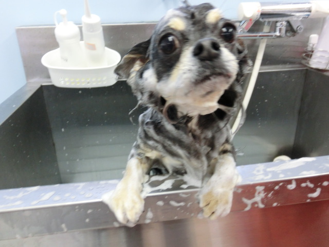 シャンプー中、 レオン君