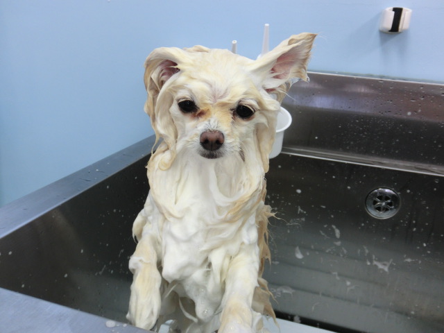 シャンプー中 小雪ちゃん