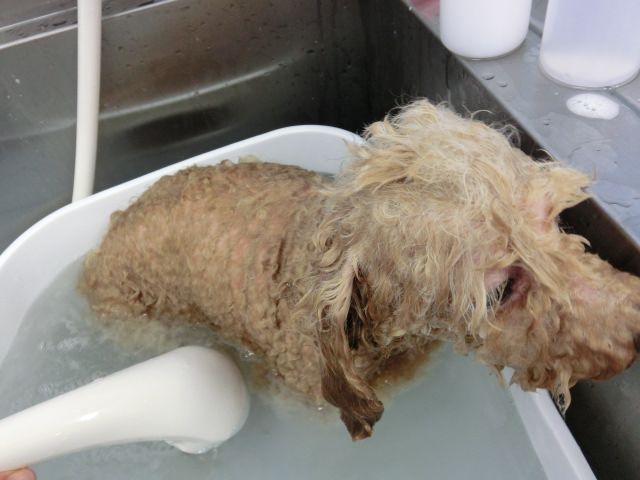 きなこちゃん、 オゾンバブルウォーターで、 温浴中