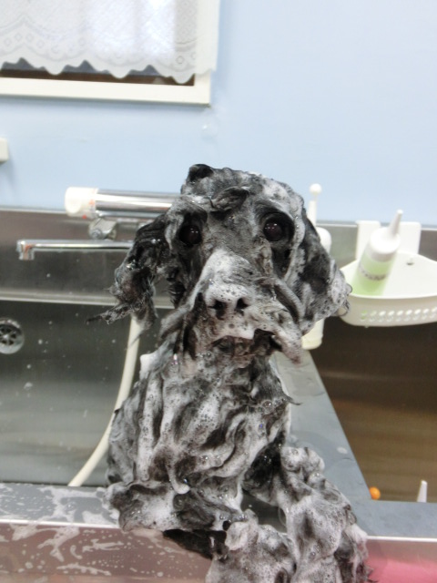 シャンプー中    固まってる
