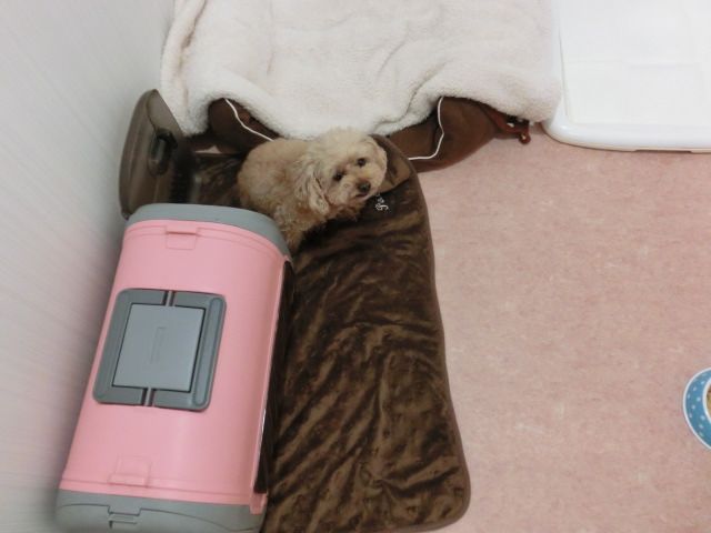 なので、 キャリーに 毛布をひいてあげました