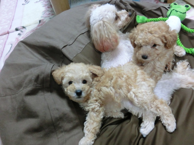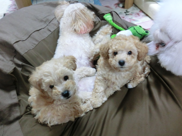 ちびちゃん達、 あんずのおかげで 犬社会を分かってきてるようです