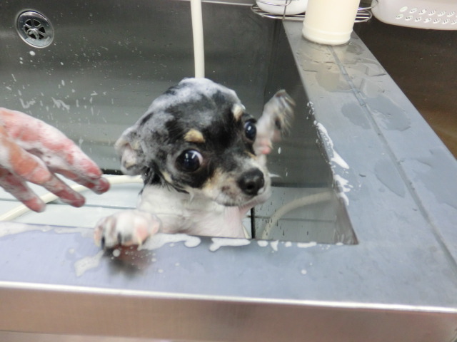 ニコ君、 シャンプー中