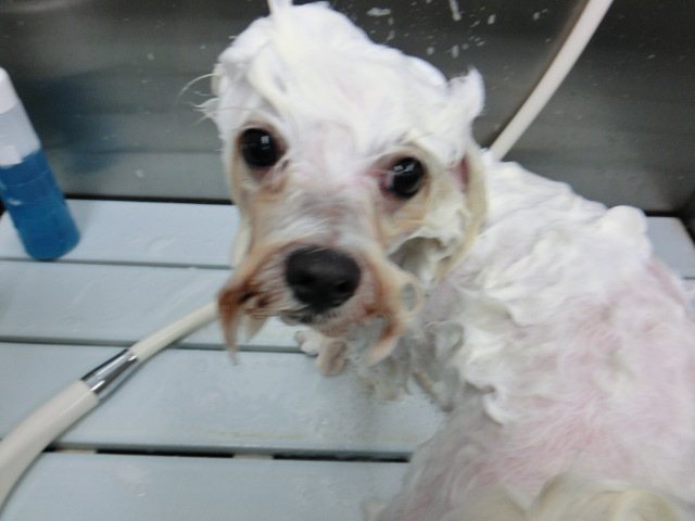 ペロ君、 シャンプー中