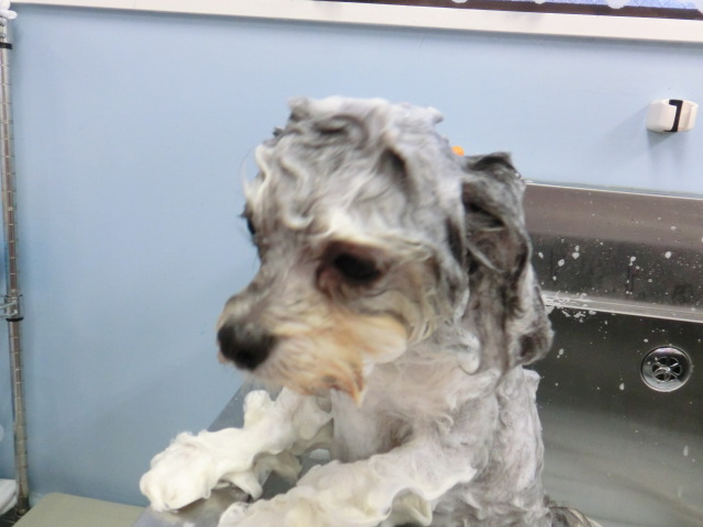 まる君、 シャンプー中