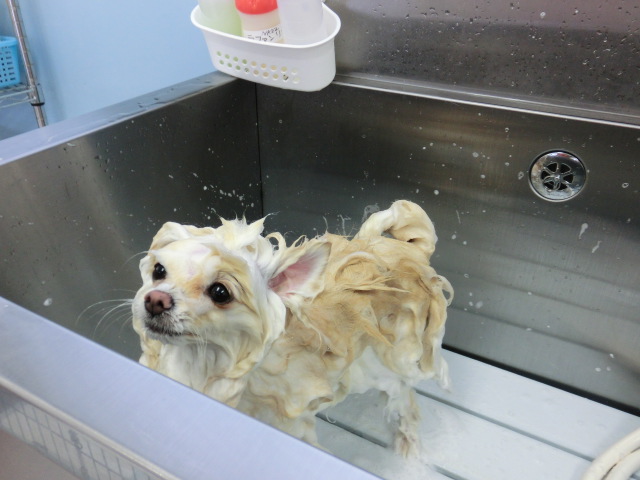 小雪ちゃん、 シャンプー中