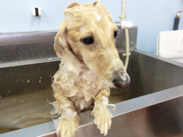 ベア君、 シャンプー中