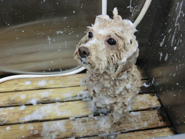 毛質がオイリーな きなこちゃん、 しっかりシャンプー