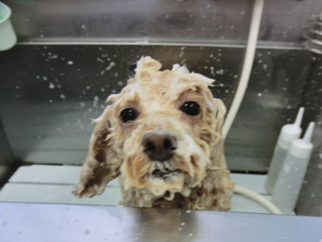 シャンプー中 きなこちゃん