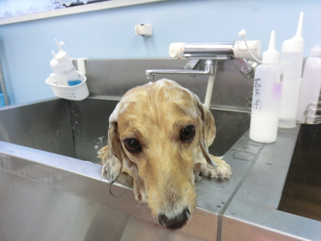 隣で チョコ君が シャンプー中、 気になってます