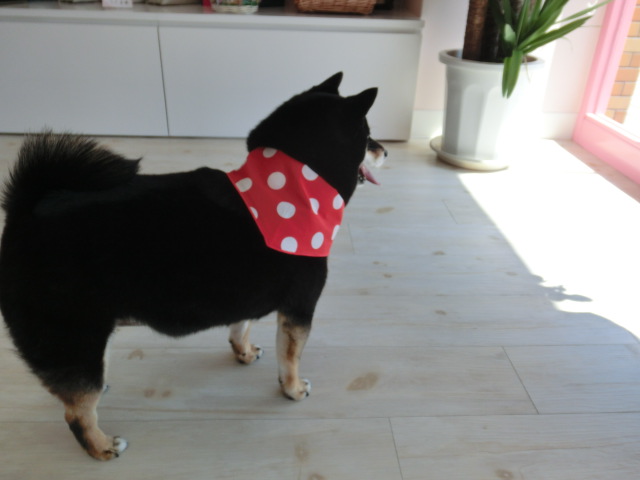 ラムちゃん、 黒い毛に 赤いバンダナがよく似合ってる