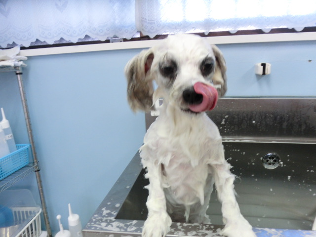 シャンプー中も ペロッ