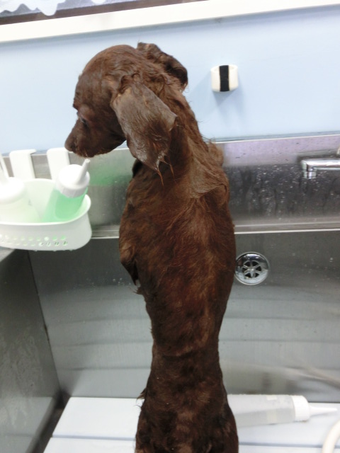 シャンプー中、 固まってる バンビ君