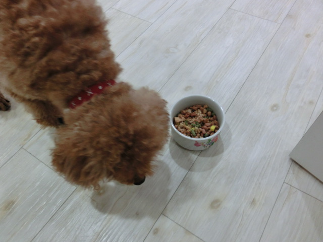 夕方の散歩から帰って、 ご飯