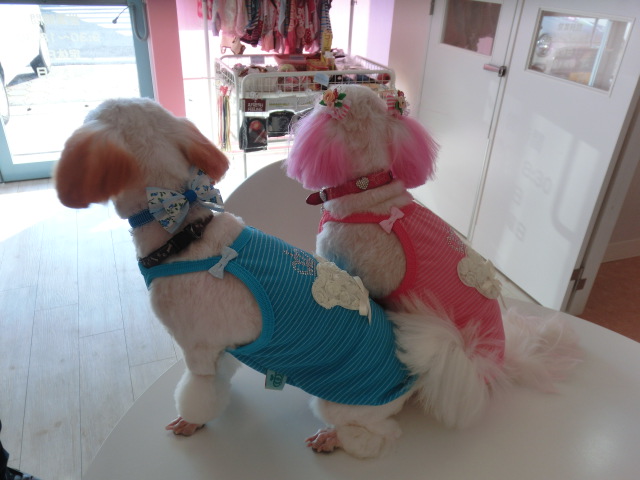 親子で色違いのお洋服を 買ってもらいました emoji