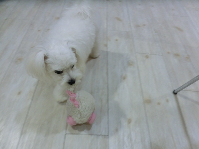 お散歩は苦手なので、 お店の中で遊んでます