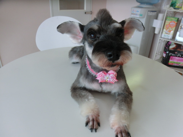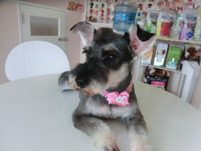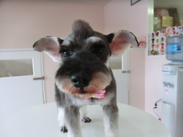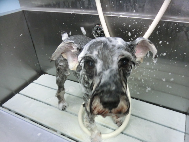 ココちゃん、 トリミングしてすっきり モヒカンシュナです シャンプー中 とっても頑張ってくれた ココちゃんでした