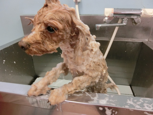 陽菜ちゃん、 トリミングしてすっきり 可愛くなったね シャンプー中 とっても頑張ってくれた 陽菜ちゃんでした