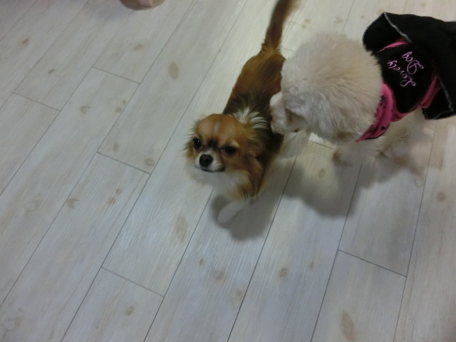 怖がりルフィちゃん、 ピノちゃんに 接近 emoji
