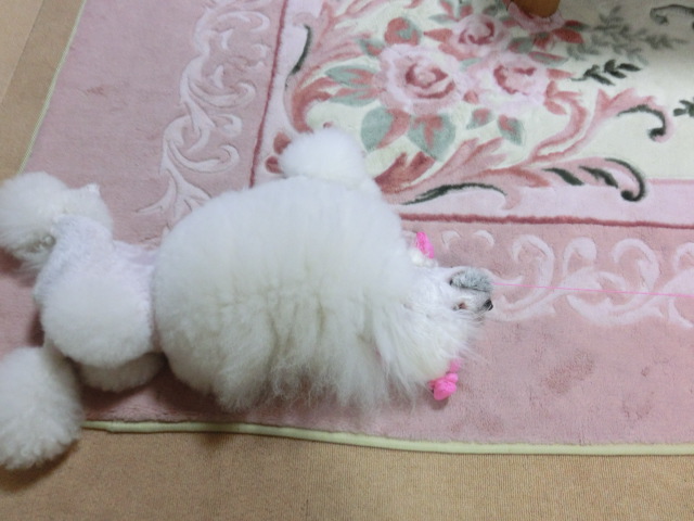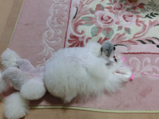 見えないかもですが、 もこもこの毛の玉に 紐がついてて