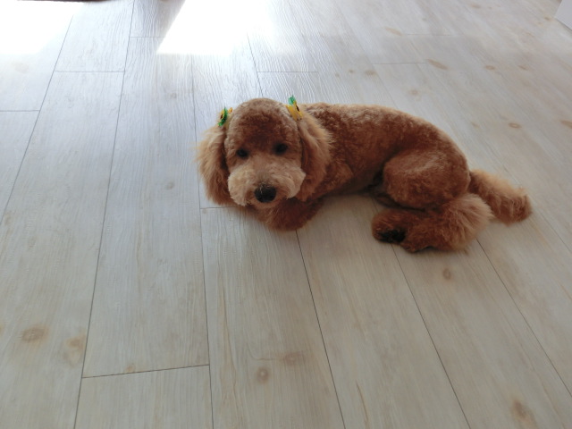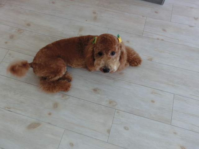 ショコラ君、 トリミングで疲れたのか、