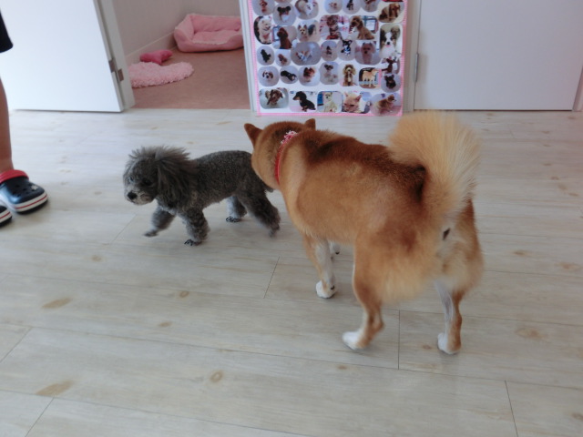 ピノちゃん、 葉月ちゃんに 追いかけられて、 あたふた