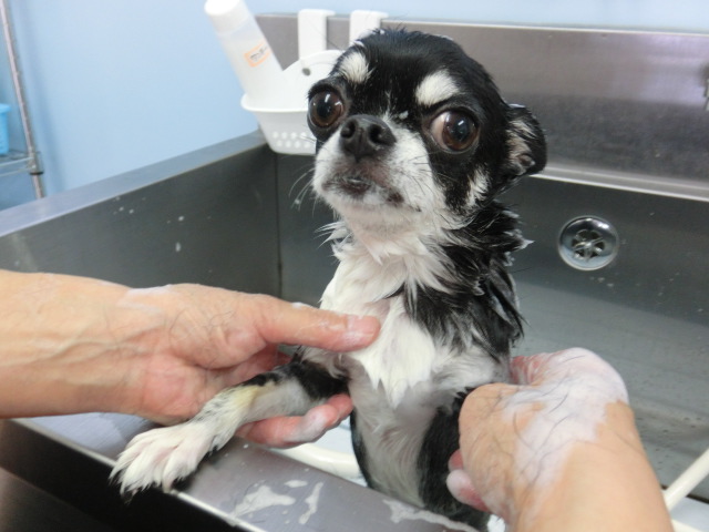 シャンプーされてる千代ちゃん