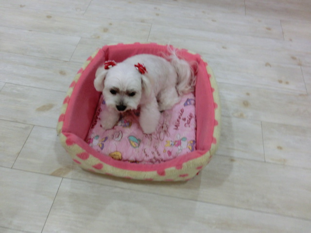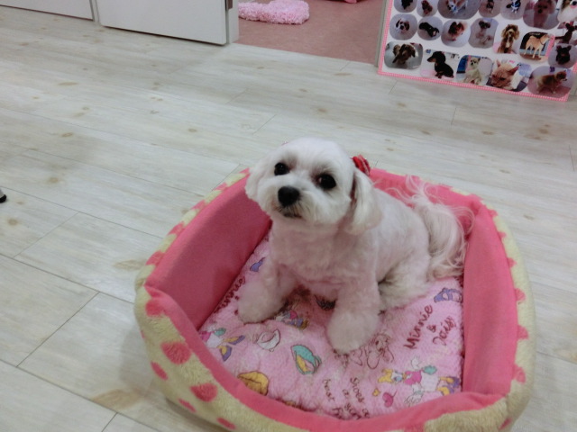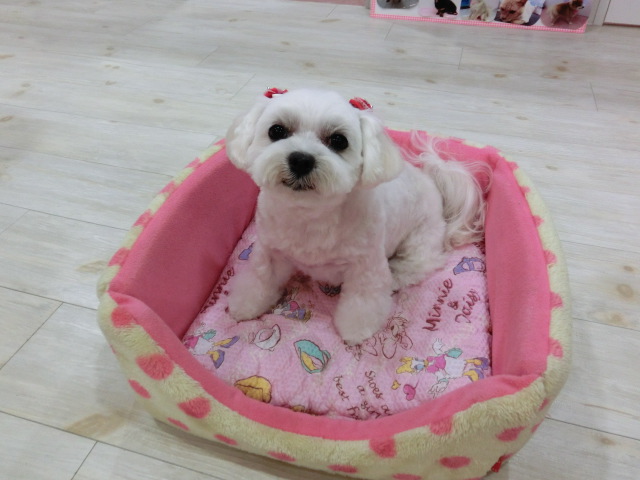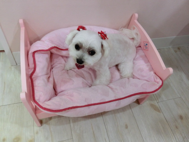 トリミングが終わると、 さくらのベッドに イン