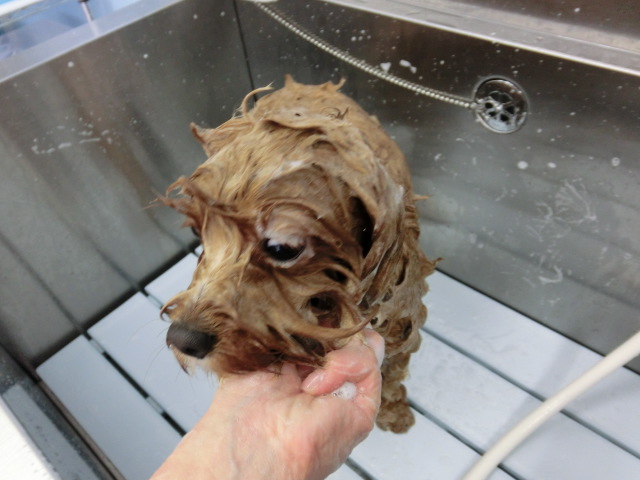 お顔の近くを乾かす時は、風量を下げるんですが、みんな顔をそむけます