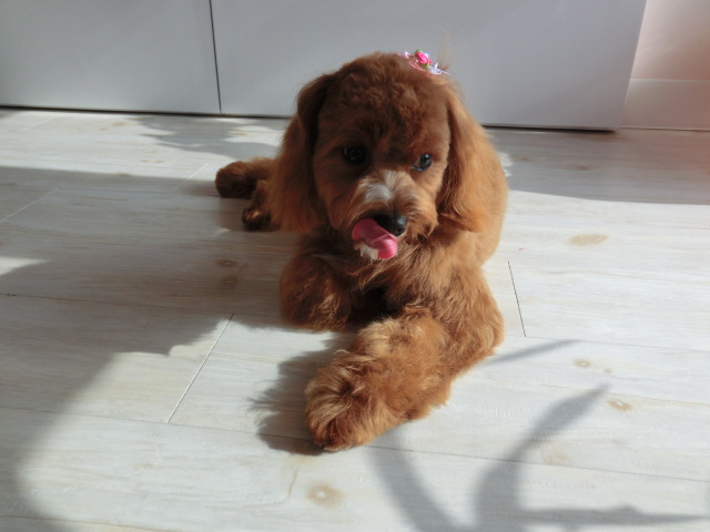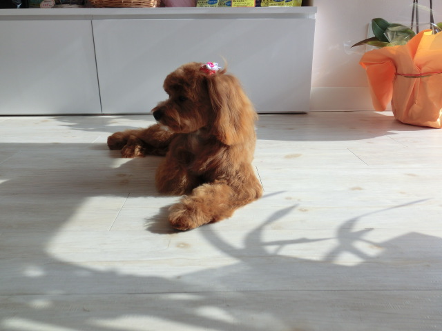 トリミングが終わって、日向ぼっこ・・・
