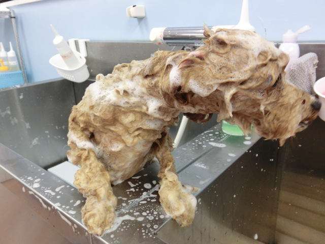 あわあわだらけの チロルちゃんでした