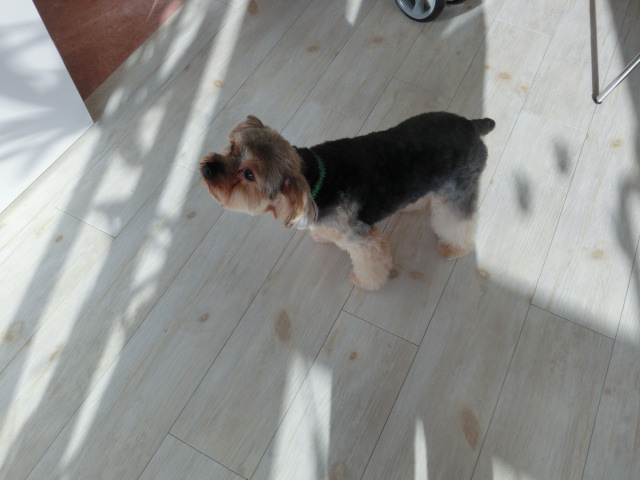 今日は 暖かいコートを 買ってもらった モカ君