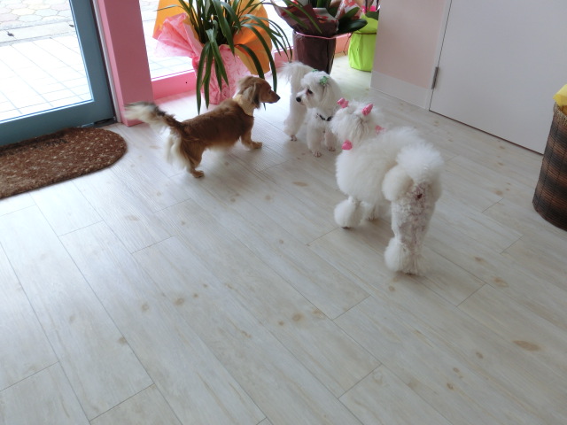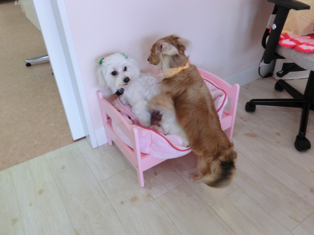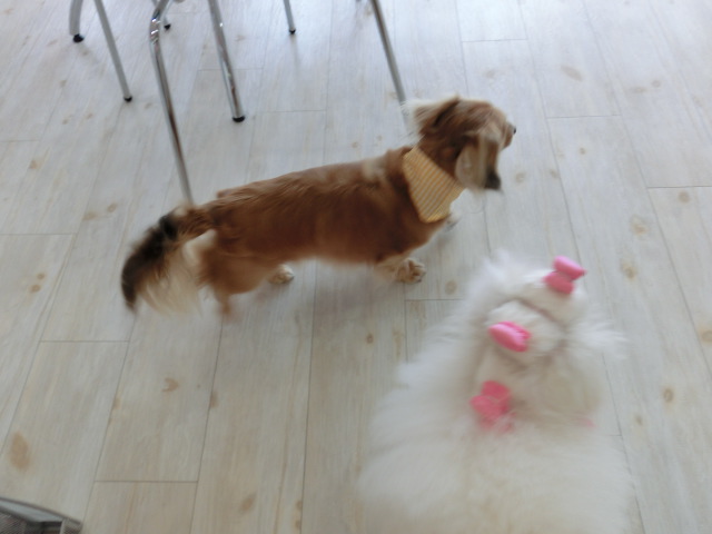 お店で、あんずとボノ君が遊んでるから、