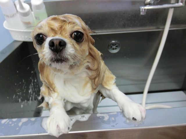 シャンプー中の チャチャ君の可愛い顔