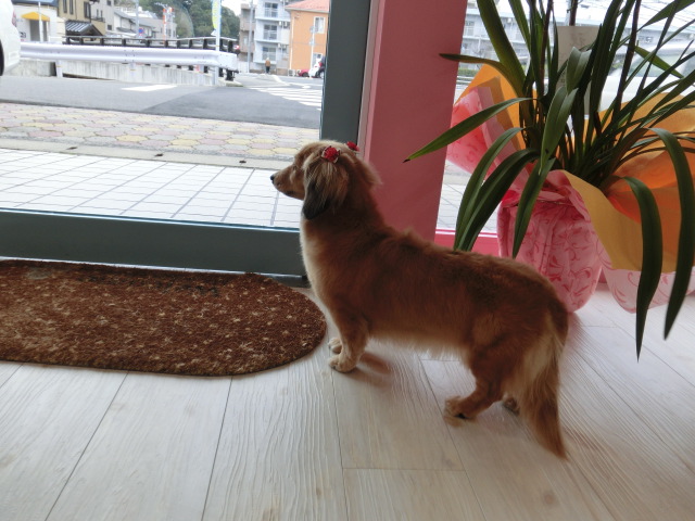 車の音がすると、外を見るラブちゃん