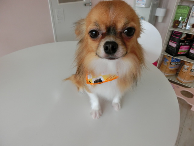 トリミングして、 いつもの可愛い エルモ君